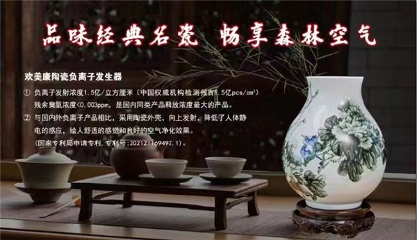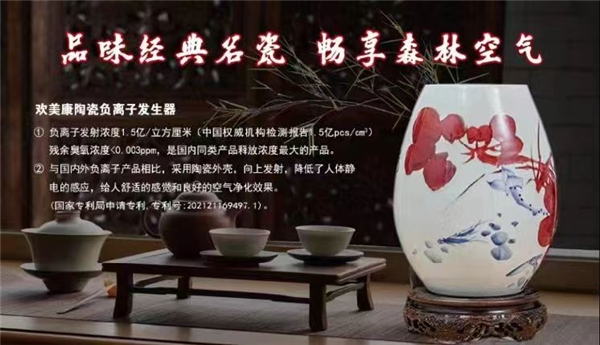 欢美康陶瓷负离子为什么火?首先得到了市政府领导及相关部门的高度认可、政策支持,同时得到270多家新闻媒体、网络的广泛关注报道,满足了消费者的审美需求,具备观赏性。不同造型的陶瓷外观具有很大的收藏价值,更为重要的是它能向上释放达到过亿的小粒径负离子,为消费者的健康保驾护航!