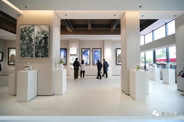 揭牌和开幕仪式结束后,与会嘉宾参观“遇·见”龚余辉陶瓷艺术作品展。《东方红》《古老的村落》《山色空蒙》《静观琼宇》《一池秋水》......此次展览展出了龚余辉近年来创作的陶瓷艺术作品100余件,主要为青花和高温颜色釉两个体系,并且对花鸟、山水领域都有所涉及,在整体与局部之间融合,在具象与抽象之间翔咏,全面呈现了他的陶瓷艺术主张。