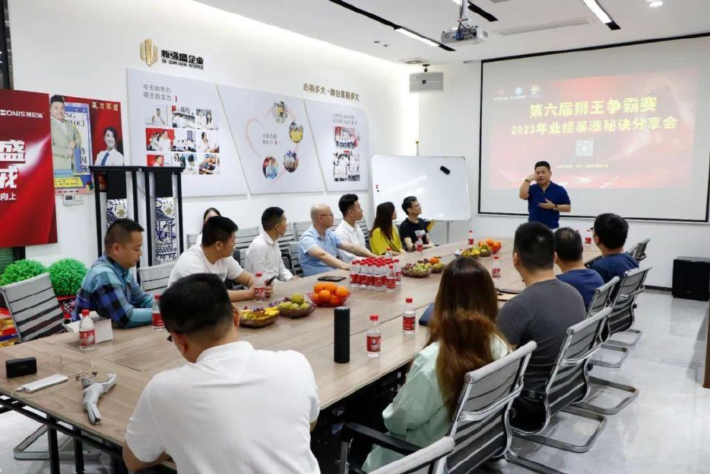 4月28日,第六届狮王争霸赛-2023年业绩暴涨秘诀线上交流分享会,在新强盛企业总部成功举行。