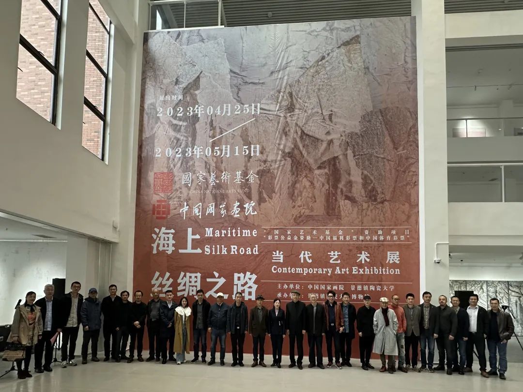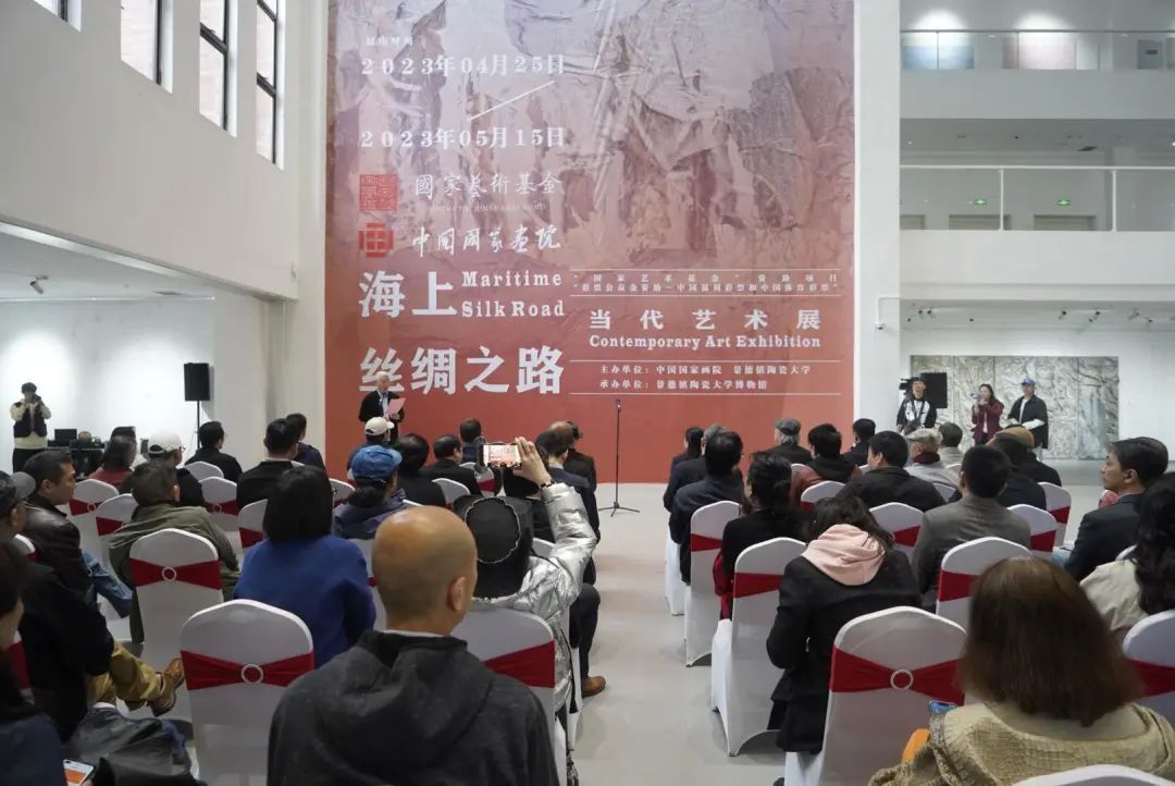 4月25日,由中国国家画院申报的国家艺术基金宣传交流推广项目“海上丝绸之路”当代艺术展在景德镇陶瓷大学美术馆开幕。景德镇市委常委、宣传部部长林蓉出席开幕式并宣布展览开幕。景德镇陶瓷大学党委副书记、副校长(主持行政工作)、江西省美术家协会主席吕品昌,中国国家画院理论研究所负责人陈明,中国国家艺术基金管理中心李达,中国美术家协会综合材料绘画与美术作品保存修复艺委会主任、“海上丝绸之路”当代艺术展项目负责人胡伟,“海上丝绸之路”当代艺术展展览统筹方志勇分别在开幕式上致辞。开幕式由景德镇陶瓷大学博物馆馆长赵传玉主持。