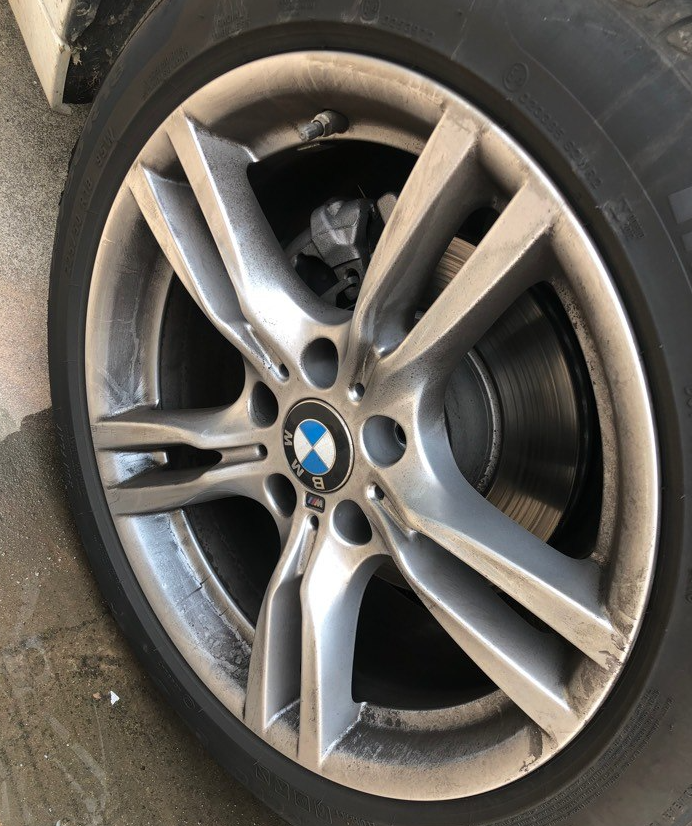刹车掉粉是宝马传统技能,据说是因为欧洲环保要求,所以宝马原配刹车片里的金属成分少,摩擦的时候掉粉比较多,并且整个刹车片经过磁化,掉下来的粉会吸附在轮毂上,并不会在空气中随风而去,你只能自己洗车冲掉,环保少女看了给你一个大大的赞。