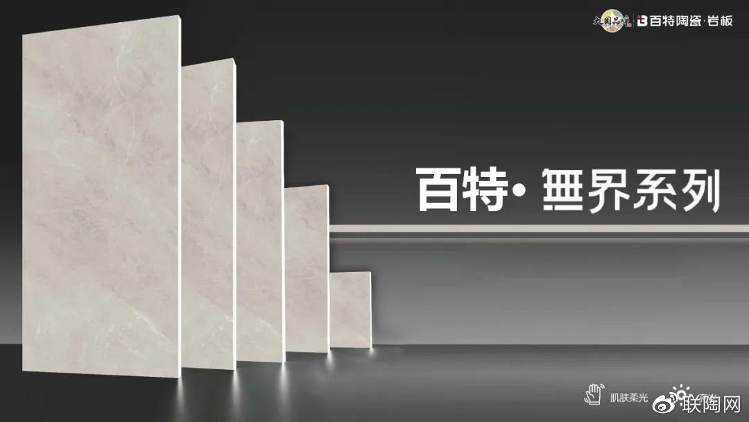 百特产品研发团队携“无界系列”首次亮相。这是继卡玛龙系列、素色时光系列之后百特的又一得意之作。同一花色不同规格,温润肌理、性能硬核、规格涵盖900x1800mm、750x1500mm、600x1200mm、800x800mm、400x800mm等。