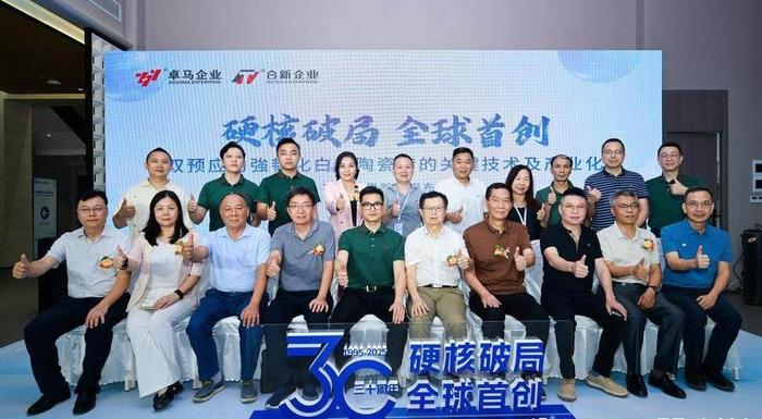 10月16日下午,“双预应力强韧化白底陶瓷砖关键技术及产业化”项目成果新闻发布会与新品推介会在佛山陶瓷总部基地卓马企业展厅召开。这项由佛山市蓝之鲸科技有限公司、广东中宏创展陶瓷有限公司、佛山市卓马陶瓷有限公司、佛山市合新创展陶瓷公司联合研发的技术,此前已在10月11日通过专家组评审,被鉴定为“国际领先水平”。