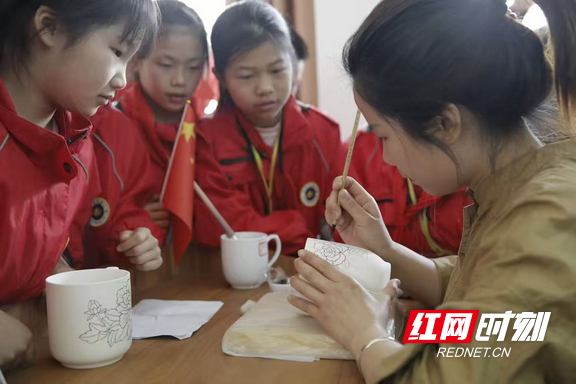 红网时刻新闻11月4日讯(通讯员 陈曙霞)11月4日,衡阳县界牌镇凌文武瓷艺传习所里,15岁的曾思叶握汾水笔在瓷坯上彩绘。“这孩子对泥巴悟性高,学近一个月就会独立拉坯、彩绘,比不少学半年的还熟练!” 釉下彩瓷烧制技艺省级代表性传承人凌文武指着作品称赞。