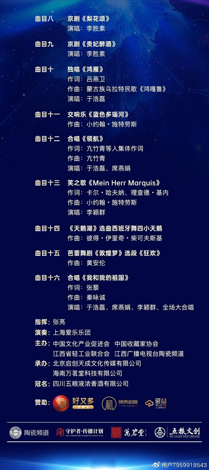 国家一级演员李胜素将献唱《梨花颂》《贵妃醉酒》,展现国粹艺术与陶瓷美学的精神共鸣;上海爱乐乐团、席燕娟、于浩磊、李颖群等也将以动人曲调,完成从古典到现代、从东方到西方的音乐穿梭。此外,景德镇陶瓷艺术家也将登台,完成陶瓷与戏曲的跨界赠礼仪式,彰显艺术门类间相融相生的文化魅力。