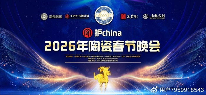 作为全国首个聚焦陶瓷界的专属春节晚会,“守护china·2026年陶瓷春节晚会”由四川五粮液浓香酒有限公司(五粮文创品牌)冠名,中国文化产业促进会、中国收藏家协会、江西省轻工业联合会、江西广播电视台陶瓷频道联合主办,海南万茗堂科技有限公司、北京启创天成文化传媒有限公司共同承办;景德镇陶瓷大学、景德镇学院、江西省陶瓷行业协会、景德镇市文学艺术界联合会、景德镇陶瓷文化传承创新中心、景德镇非物质文化遗产保护协会、景德镇陶瓷研究院、景德镇市美术家协会、景德镇市雕塑协会、景德镇陶瓷艺术研究院、中国文化产业促进会陶瓷文化专业委员会、中国收藏家协会工艺美术分会等数十家权威机构协办,并得到联合国教科文组织“陶瓷文化:保护与创新”教席、昌南新区名坊园的大力支持以及宁波市好又多云超市有限公司、怀仁市锦泰陶瓷有限公司、景德镇瓷芯人工智能科技有限公司特约赞助。
