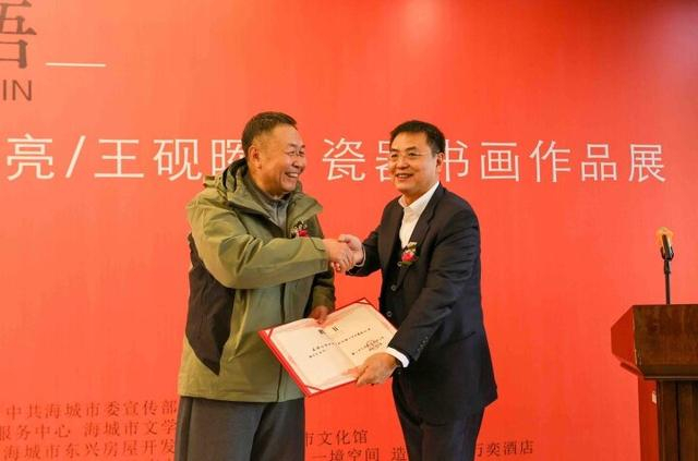 翰墨舒胸意,瓷语诉匠心。 30日,丹青瓷语——张世刚、李文亮、王砚晖陶瓷书画艺术展在海城市文化馆开展。