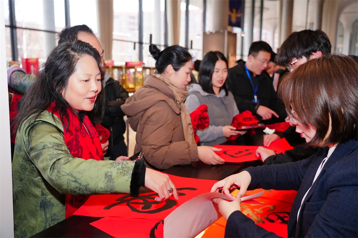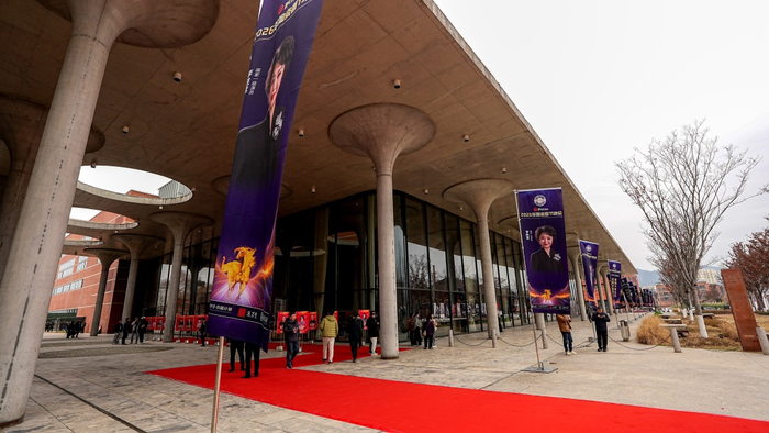 走进景德镇陶溪川大剧院,庄重而热烈的氛围迎面而来。道旗沿路排列,迎接每一位陆续抵达的嘉宾。红毯之上,身影交错,步入大厅,工作人员热情迎上,为每位嘉宾披上一条寓意吉祥的红色围巾,并送上由艺术家亲笔书写的“福”字与“马”字,一份满载温情的新春祝愿在笑意间传递开来。