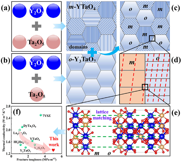 “昆明理工大学团队深耕这个领域十余年,终于找到了解决方案。”冯晶说,他们给陶瓷打造“铁弹畴+高密度位错”的双重防护,设计出钇钽酸盐及三钇钽酸盐复合陶瓷。这两种成分的原子排列高度匹配,就像拼图一样严丝合缝,让陶瓷内部结构更稳固。当材料受到外力时,内部的“铁弹畴”会像“缓冲器”一样发挥作用——要么让裂纹改变方向绕着走,要么通过自身结构转变吸收冲击力,还能形成“裂纹桥”拉住断裂处,大大减少断裂风险。